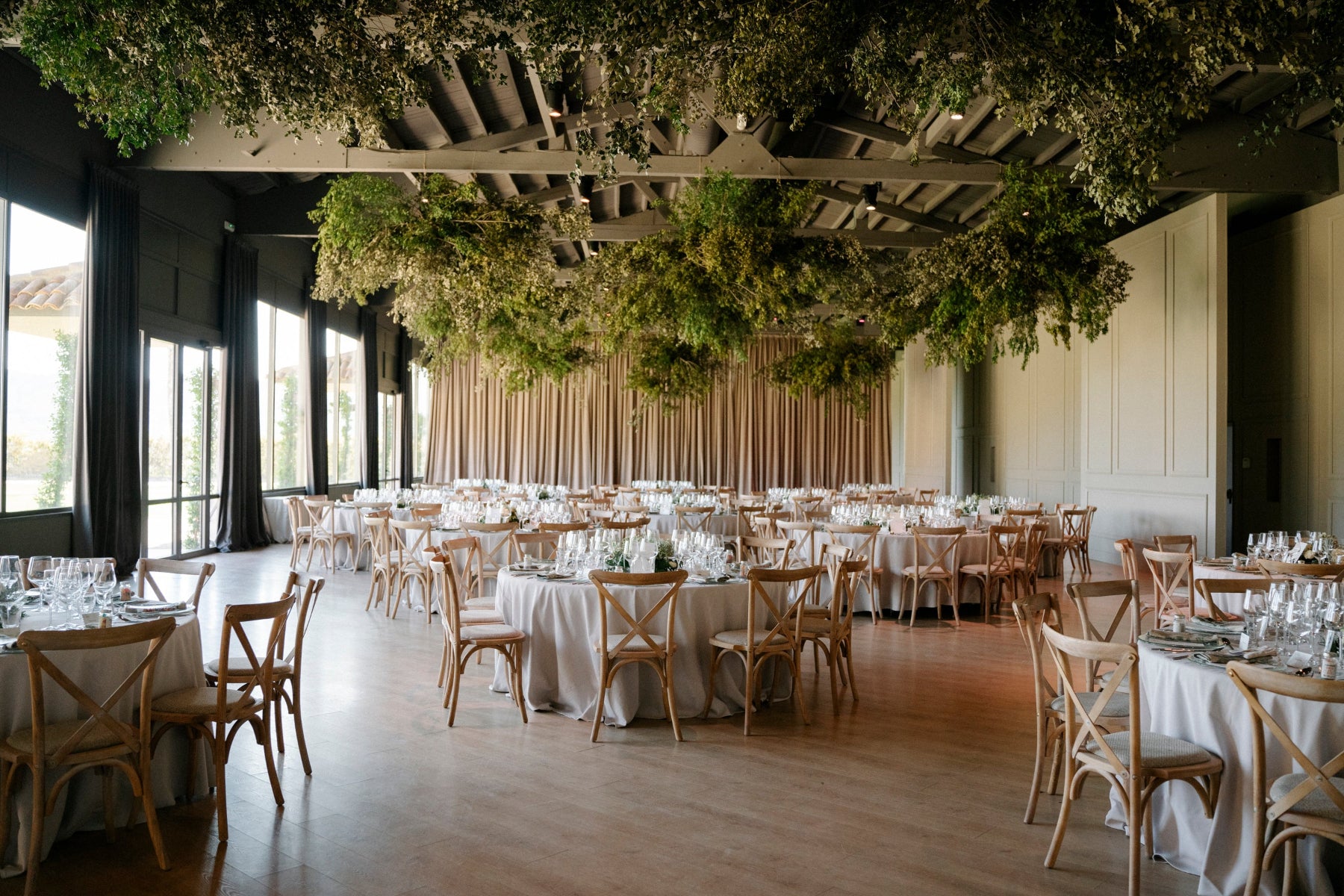 La entrada de luz natural a través de sus grandes ventanales, junto con la solidez de la estructura original, crea un ambiente luminoso y acogedor, ideal para montajes con mesas y eventos de gran formato. Un espacio versátil que combina historia, funcionalidad y un diseño actual para celebraciones durante todo el año.