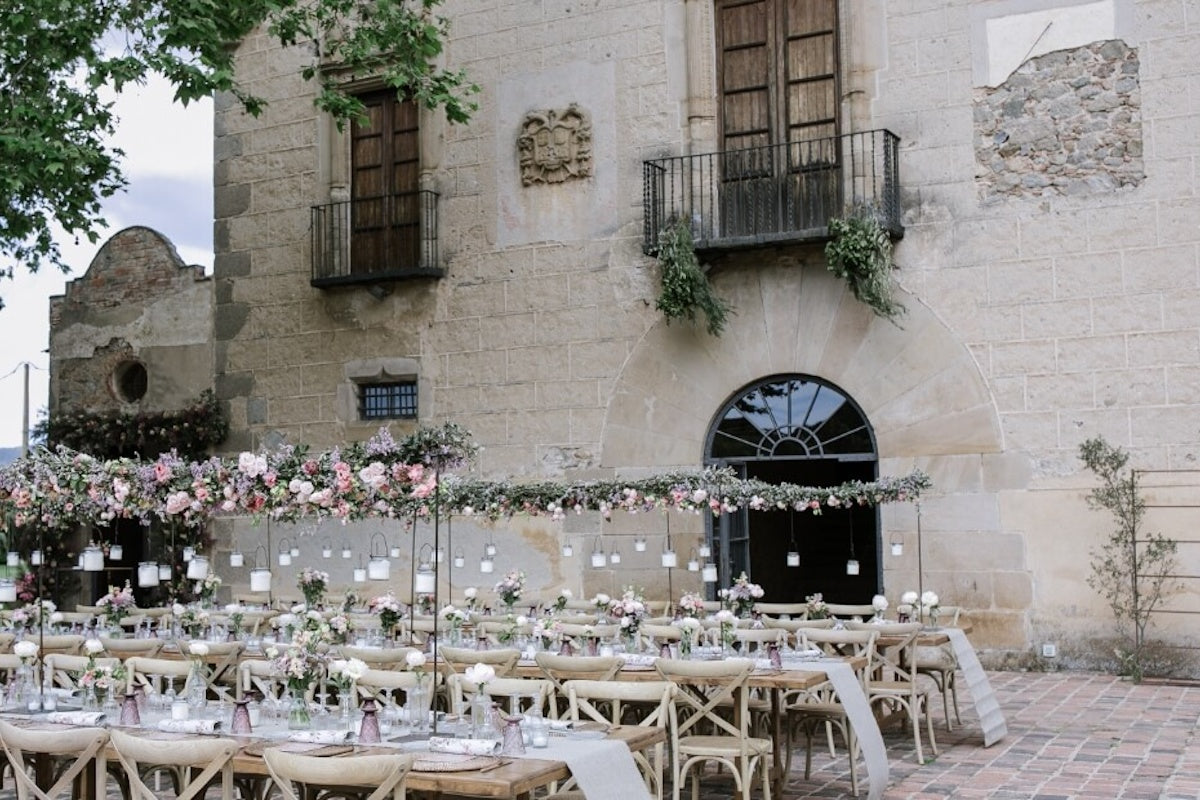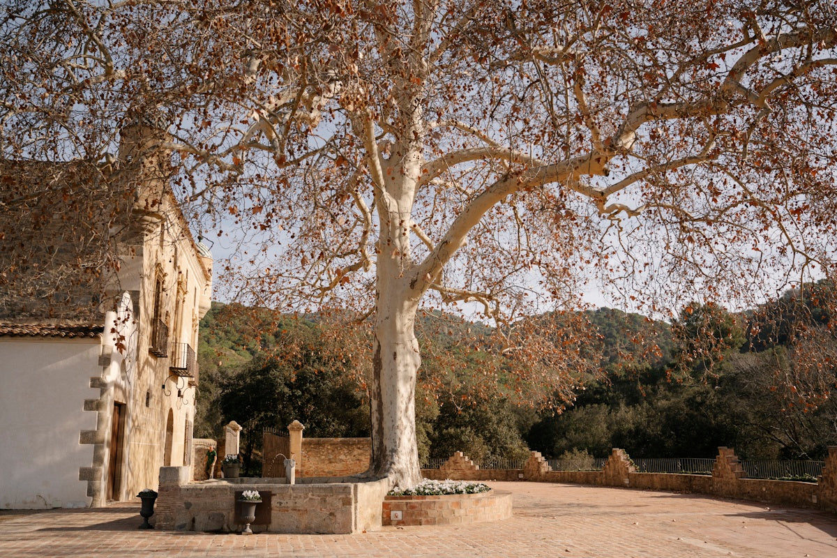 Situada frente a la masía, esta zona ofrece amplitud, luz natural y un entorno mediterráneo que transforma cualquier ceremonia, cóctel o banquete exterior en un momento único. Su ubicación, rodeada de historia y vegetación, la convierte en un espacio muy versátil, perfecto para decoraciones personalizadas y montajes creativos.