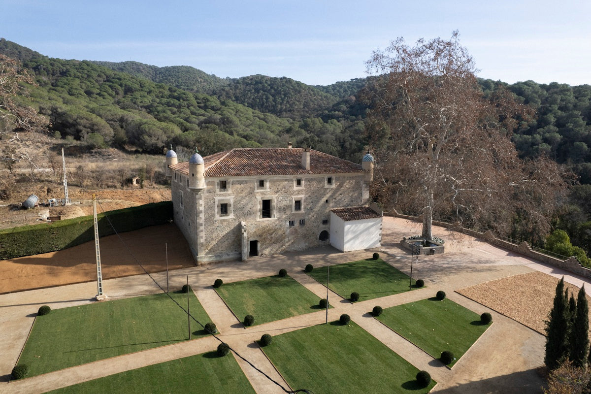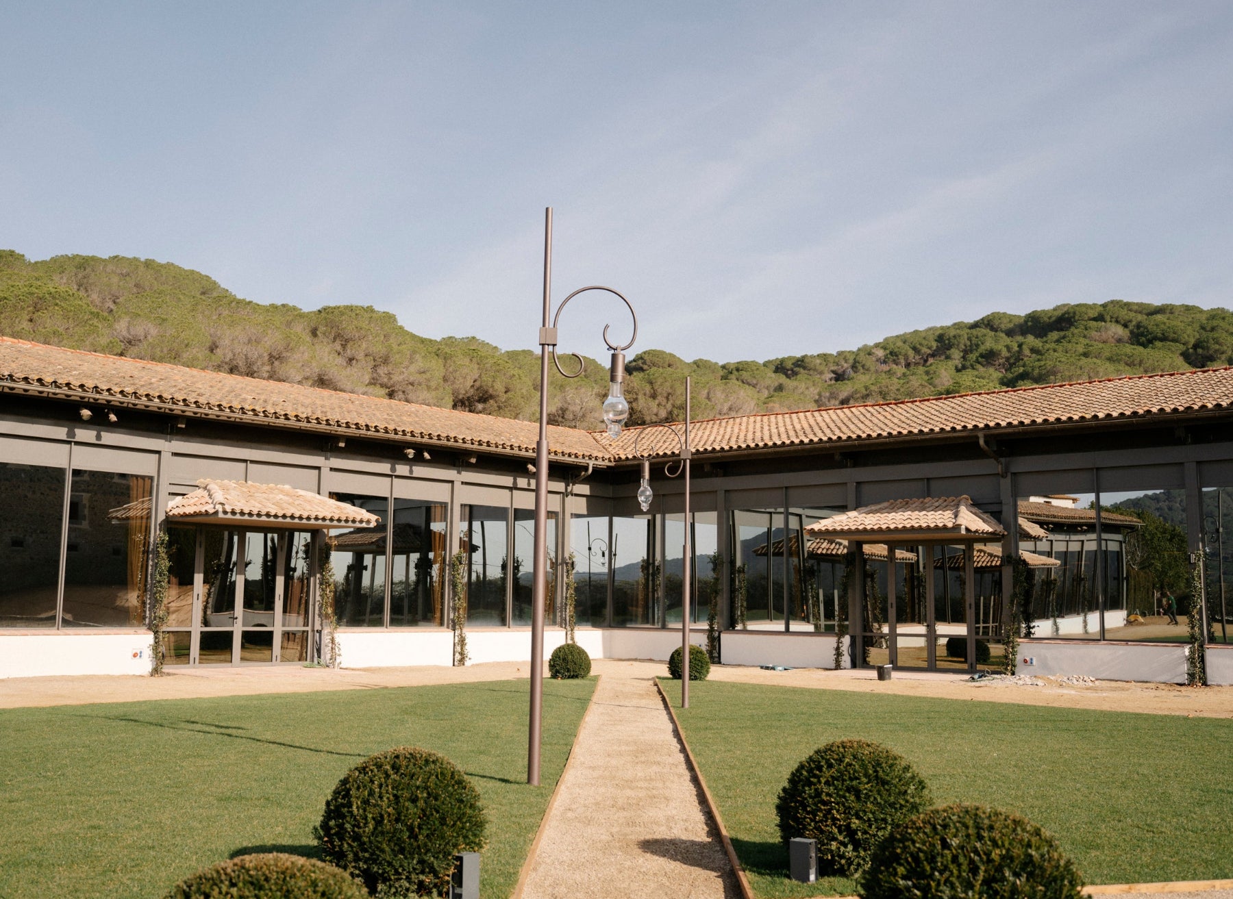 Espacio exterior emblemático frente a la masía, ideal para ceremonias y celebraciones al aire libre. Amplitud, luz natural y un entorno mediterráneo que convierte cada momento en algo especial.